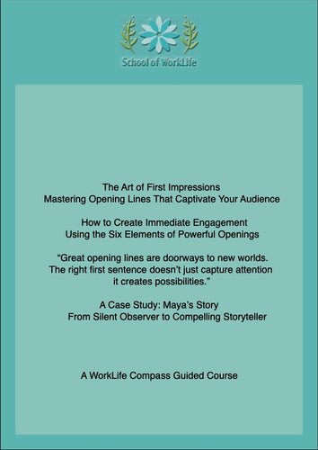 The Art of WorkLife Storytelling is woven throughout all my courses. While this page features works primarily focused on enhancing your storytelling skills, you can discover storytelling development themes in my other courses by exploring ‘The Art of WorkLife Storytelling’ category or checking the promotional description that highlight how each course addresses WorkLife storytelling alongside its main theme.